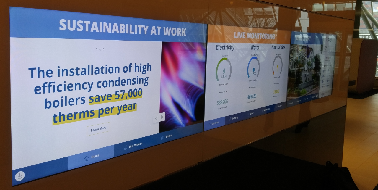 Interactive tenant directory featured articles and additional useful information available on multiple screens built in touch display array. Project by SRM Marketing and Architecture was completed and deployed in late 2016. Graphic design, mock-ups and front-end polish by the talented Adam Volkman, portfolio presentation.